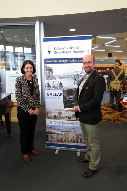 BDGS members were based at the Society's headquarters in the Australiana Research Room of the Library for the weekend of Saturday 9th and Sunday 10th May 2015. Speakers scheduled for both days included Adam Ford from ABC (pictured) with Jennifer Burrell, Ben Mercer from Ancestry and local identities representing historical and WW1 commemorative groups. In her talk Betty Slater from BDGS emphasised the importance of not doing your family history from Index information. She demonstrated the value of obtaining certificates for births deaths and marriages by providing examples of vital details which would otherwise be missed.