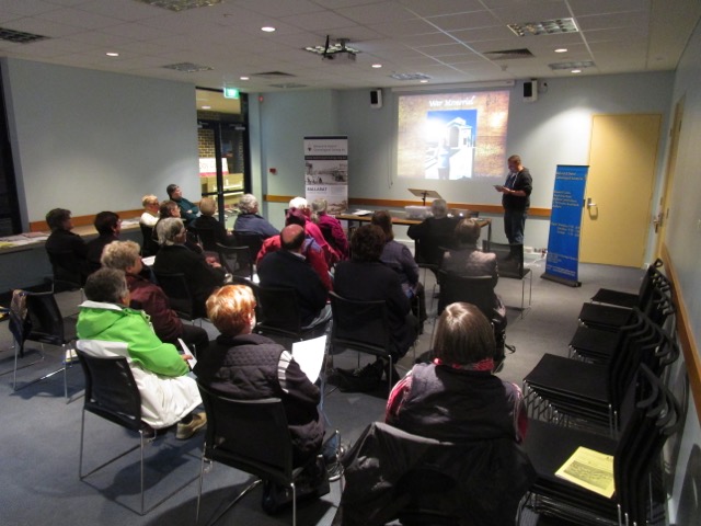 Ballarat supplied one third of the world's gold in the 1850s and it it reckoned that all up 650 tons was produced. We all need context for family histories and it was most pleasing that so many fascinating aspects and details were covered. Such bleak July weather but a good attendance of 30. Serenity prevailed despite the buzz of an alarm elsewhere in the library building and the sideshow of a visit by paramedics who declared the patient well enough to avoid hospitalisation.